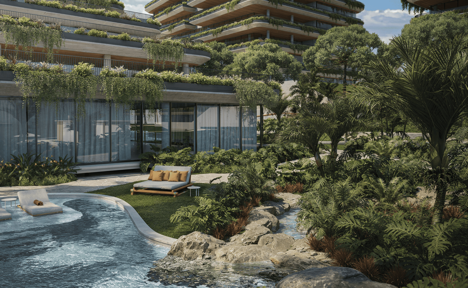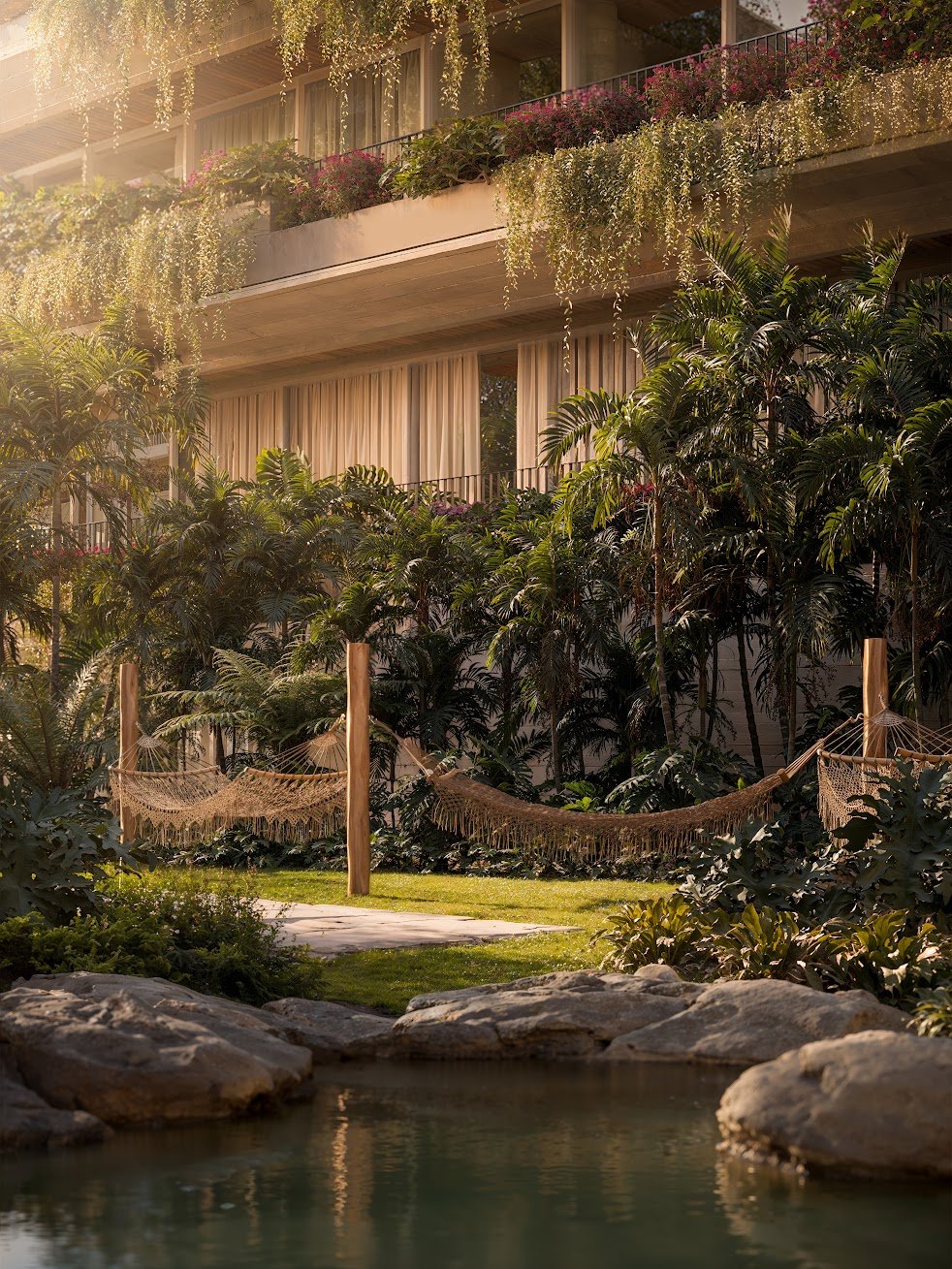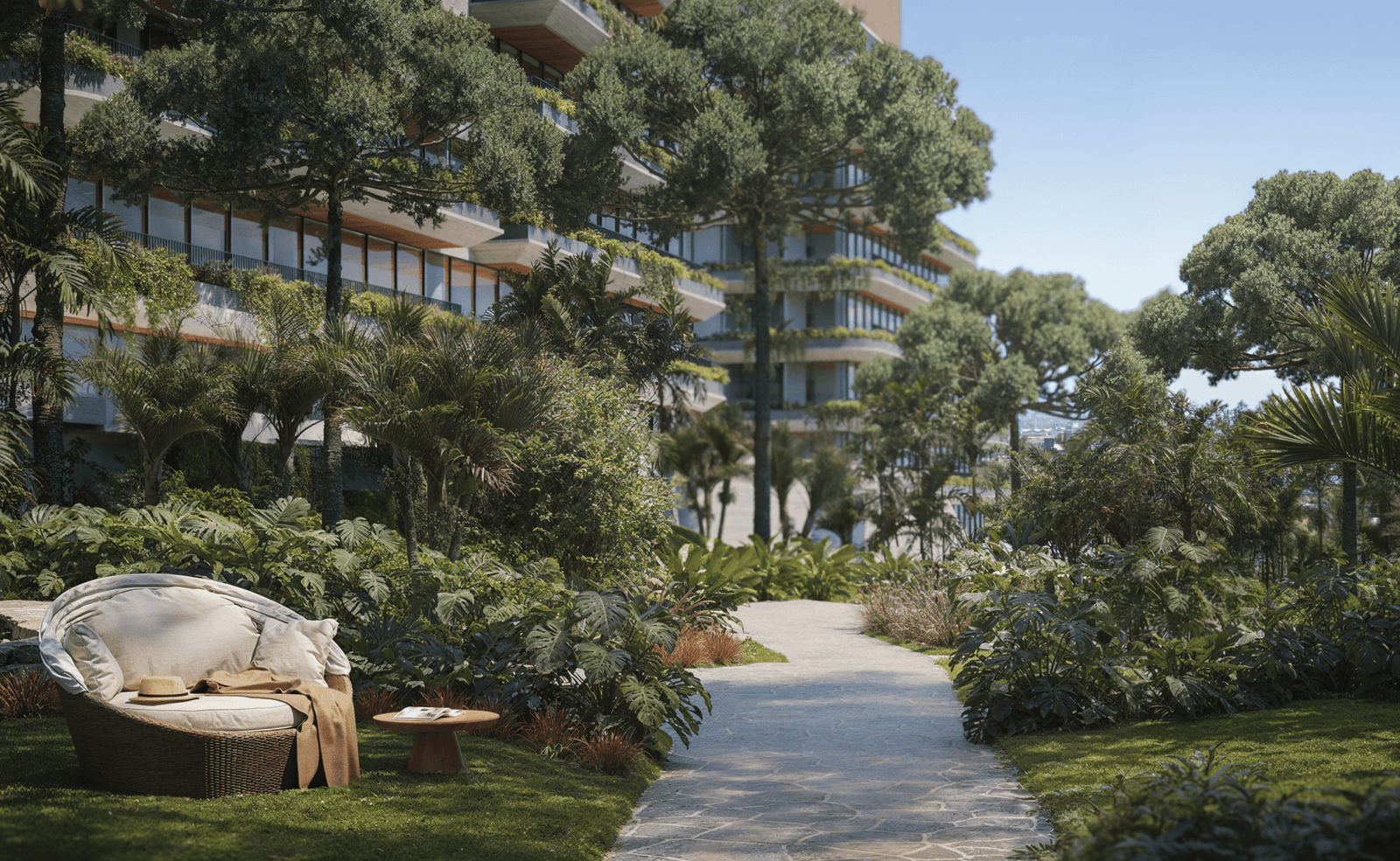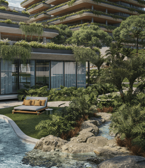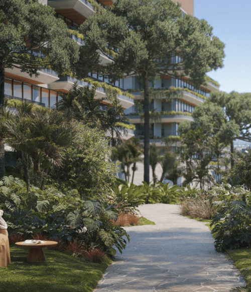Projeto paisagístico com jardins privativos e áreas comuns arborizadas, conectando você à natureza.